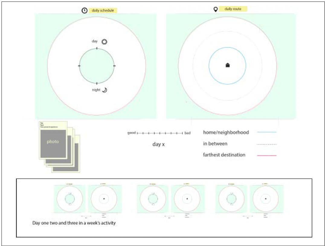 Design tools were created to aid in participant research using the underlying interpretive method of boundary— and social— objects. This research fed back in to community discussion. A working matrix of community and design engagement was built (partially borrowing from Buroway and ideas of public sociology) that includes 1) organization- interactions- relationships, 2) alternative environmental design configurations (spaces of practice), 3) immediate object-based problem solving (tools), 4) public actions, information and visibility (communication).