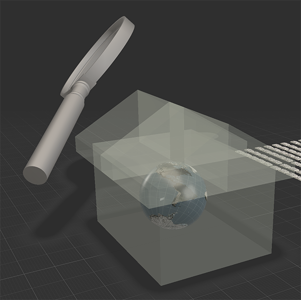In the space, the AR shows a turning globe, oversized books and redacted documents interspersed with false social media posts reported as facts by news media.